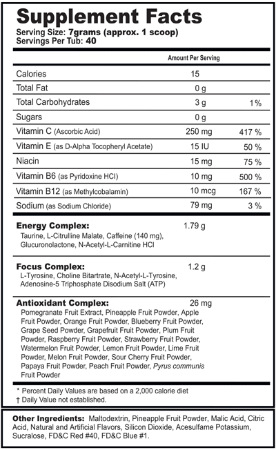 Each 15-calorie serving of Energy Formula powder contains 140 mg of caffeine and is focus amino-fortified, packed with antioxidants and vitamin-fortified with Vitamins C + E + B12 + B6. Each 0-calorie G FUEL Can contains 300 mg of caffeine, zero sugar and zero calories, along with proprietary energy and focus-enhancing complexes. DON'T WANT CAFFEINE? G FUEL Hydration Formula is calorie free, sugar free and caffeine free. The G FUEL Hydration line features a combination of the following key ingredients: the focus-enhancing amino acid L-Tyrosine; vitamins C, E, B12 and B6; and electrolytes to promote hydration.