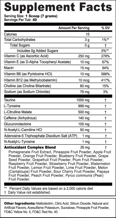 Each 15-calorie serving of Energy Formula powder contains 140 mg of caffeine and is focus amino-fortified, packed with antioxidants and vitamin-fortified with Vitamins C + E + B12 + B6. Each 0-calorie G FUEL Can contains 300 mg of caffeine, zero sugar and zero calories, along with proprietary energy and focus-enhancing complexes. DON'T WANT CAFFEINE? G FUEL Hydration Formula is calorie free, sugar free and caffeine free. The G FUEL Hydration line features a combination of the following key ingredients: the focus-enhancing amino acid L-Tyrosine; vitamins C, E, B12 and B6; and electrolytes to promote hydration.