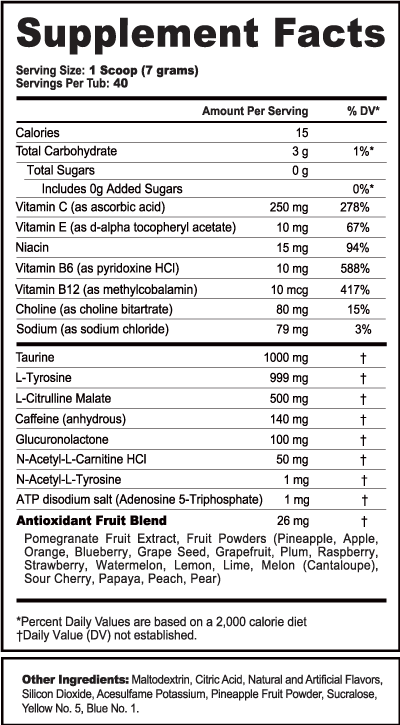 Each 15-calorie serving of Energy Formula powder contains 140 mg of caffeine and is focus amino-fortified, packed with antioxidants and vitamin-fortified with Vitamins C + E + B12 + B6. Each 0-calorie G FUEL Can contains 300 mg of caffeine, zero sugar and zero calories, along with proprietary energy and focus-enhancing complexes. DON'T WANT CAFFEINE? G FUEL Hydration Formula is calorie free, sugar free and caffeine free. The G FUEL Hydration line features a combination of the following key ingredients: the focus-enhancing amino acid L-Tyrosine; vitamins C, E, B12 and B6; and electrolytes to promote hydration.