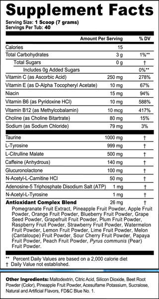 Each 15-calorie serving of Energy Formula powder contains 140 mg of caffeine and is focus amino-fortified, packed with antioxidants and vitamin-fortified with Vitamins C + E + B12 + B6. Each 0-calorie G FUEL Can contains 300 mg of caffeine, zero sugar and zero calories, along with proprietary energy and focus-enhancing complexes. DON'T WANT CAFFEINE? G FUEL Hydration Formula is calorie free, sugar free and caffeine free. The G FUEL Hydration line features a combination of the following key ingredients: the focus-enhancing amino acid L-Tyrosine; vitamins C, E, B12 and B6; and electrolytes to promote hydration.