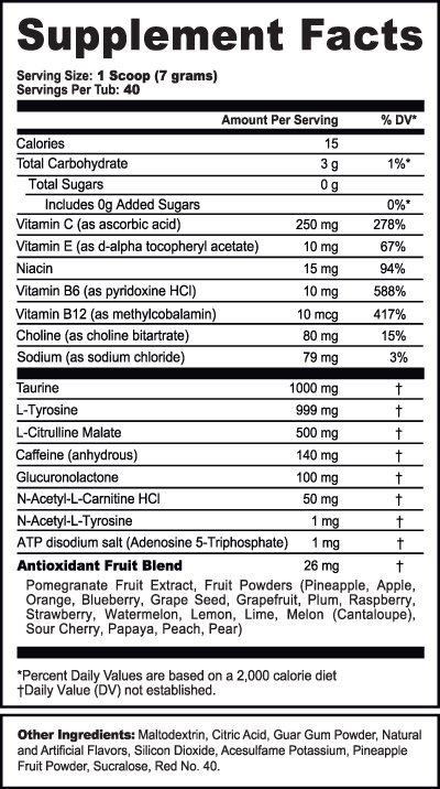 Each 15-calorie serving of Energy Formula powder contains 140 mg of caffeine and is focus amino-fortified, packed with antioxidants and vitamin-fortified with Vitamins C + E + B12 + B6. Each 0-calorie G FUEL Can contains 300 mg of caffeine, zero sugar and zero calories, along with proprietary energy and focus-enhancing complexes. DON'T WANT CAFFEINE? G FUEL Hydration Formula is calorie free, sugar free and caffeine free. The G FUEL Hydration line features a combination of the following key ingredients: the focus-enhancing amino acid L-Tyrosine; vitamins C, E, B12 and B6; and electrolytes to promote hydration.
