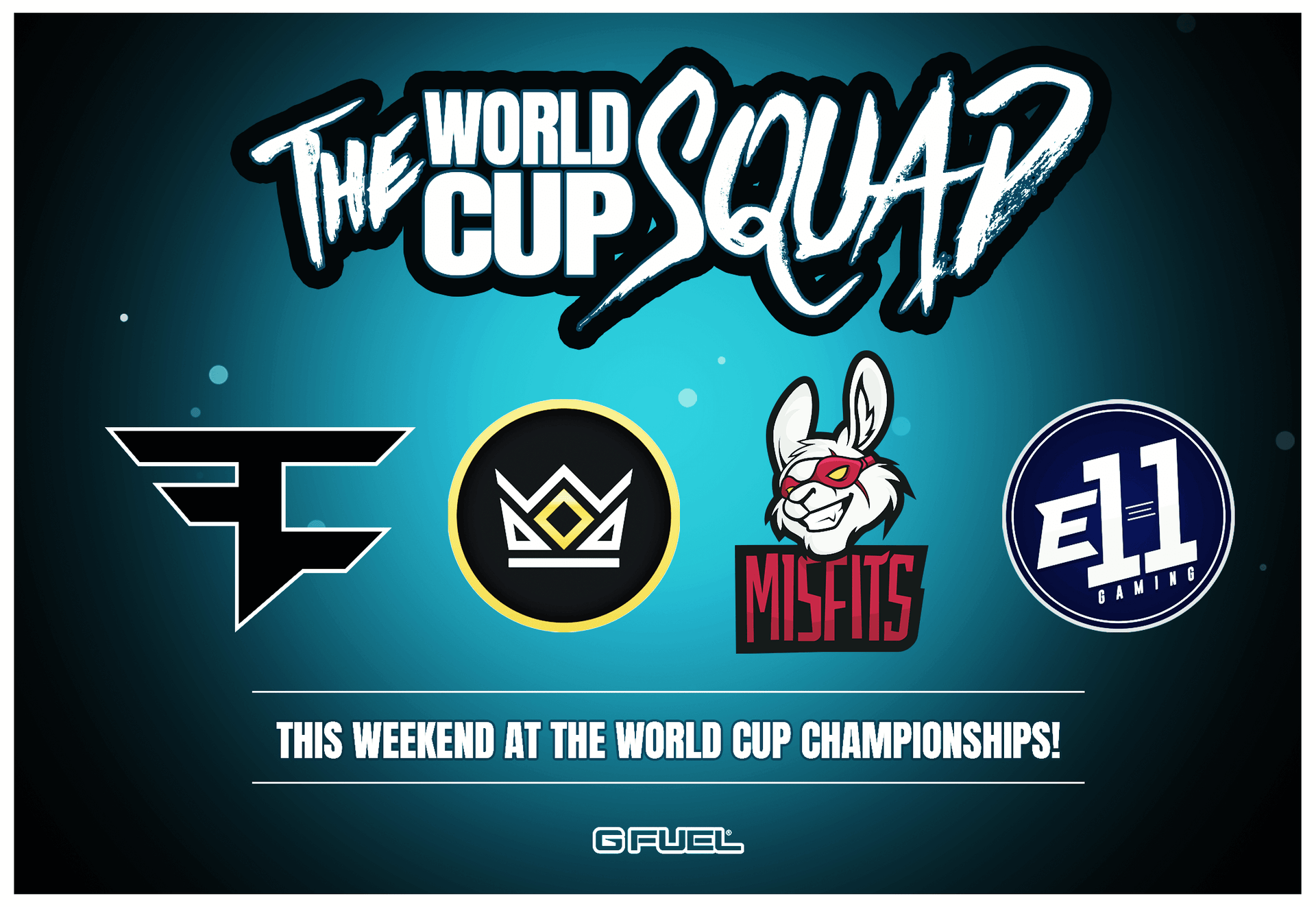 In case you couldn't tell, some of our most elite pro players (repping FaZe Clan, Kungarna, Misfits, and E11) will be competing in the Fortnite World Cup Finals. Check out the G FUEL World Cup Roster to see who they are, where they're from, and their favorite Fortnite weapon and G FUEL flavor!