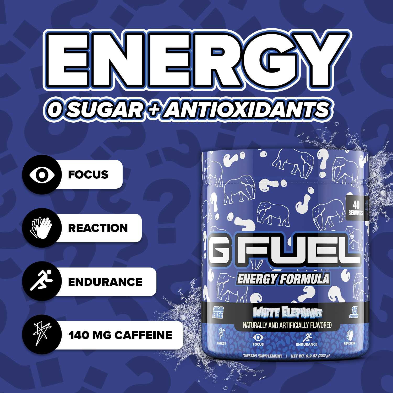 G FUEL Energy Drink is the ultimate fuel for a new generation of gamers, creators, students, and athletes. Made with top-tier ingredients, our sugar-free formulas give you the energy, focus, and endurance you need to power through your day. Not only is G FUEL a healthier choice, it also fuels a passionate community of like-minded individuals who are pushing the limits of what's possible.