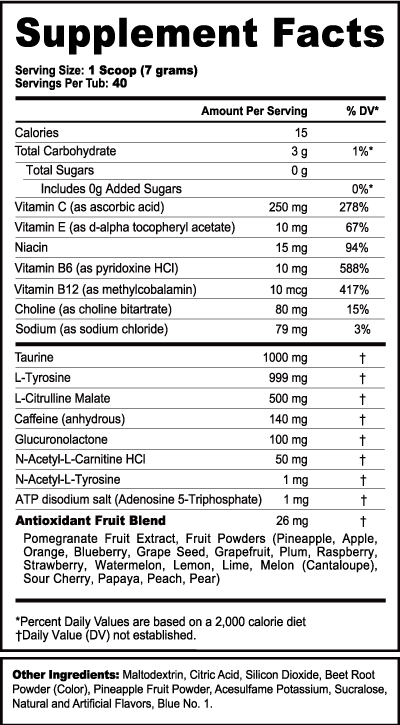 Each 15-calorie serving of Energy Formula powder contains 140 mg of caffeine and is focus amino-fortified, packed with antioxidants and vitamin-fortified with Vitamins C + E + B12 + B6. Each 0-calorie G FUEL Can contains 300 mg of caffeine, zero sugar and zero calories, along with proprietary energy and focus-enhancing complexes. DON'T WANT CAFFEINE? G FUEL Hydration Formula is calorie free, sugar free and caffeine free. The G FUEL Hydration line features a combination of the following key ingredients: the focus-enhancing amino acid L-Tyrosine; vitamins C, E, B12 and B6; and electrolytes to promote hydration.