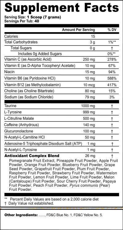 Each 15-calorie serving of Energy Formula powder contains 140 mg of caffeine and is focus amino-fortified, packed with antioxidants and vitamin-fortified with Vitamins C + E + B12 + B6. Each 0-calorie G FUEL Can contains 300 mg of caffeine, zero sugar and zero calories, along with proprietary energy and focus-enhancing complexes. DON'T WANT CAFFEINE? G FUEL Hydration Formula is calorie free, sugar free and caffeine free. The G FUEL Hydration line features a combination of the following key ingredients: the focus-enhancing amino acid L-Tyrosine; vitamins C, E, B12 and B6; and electrolytes to promote hydration.